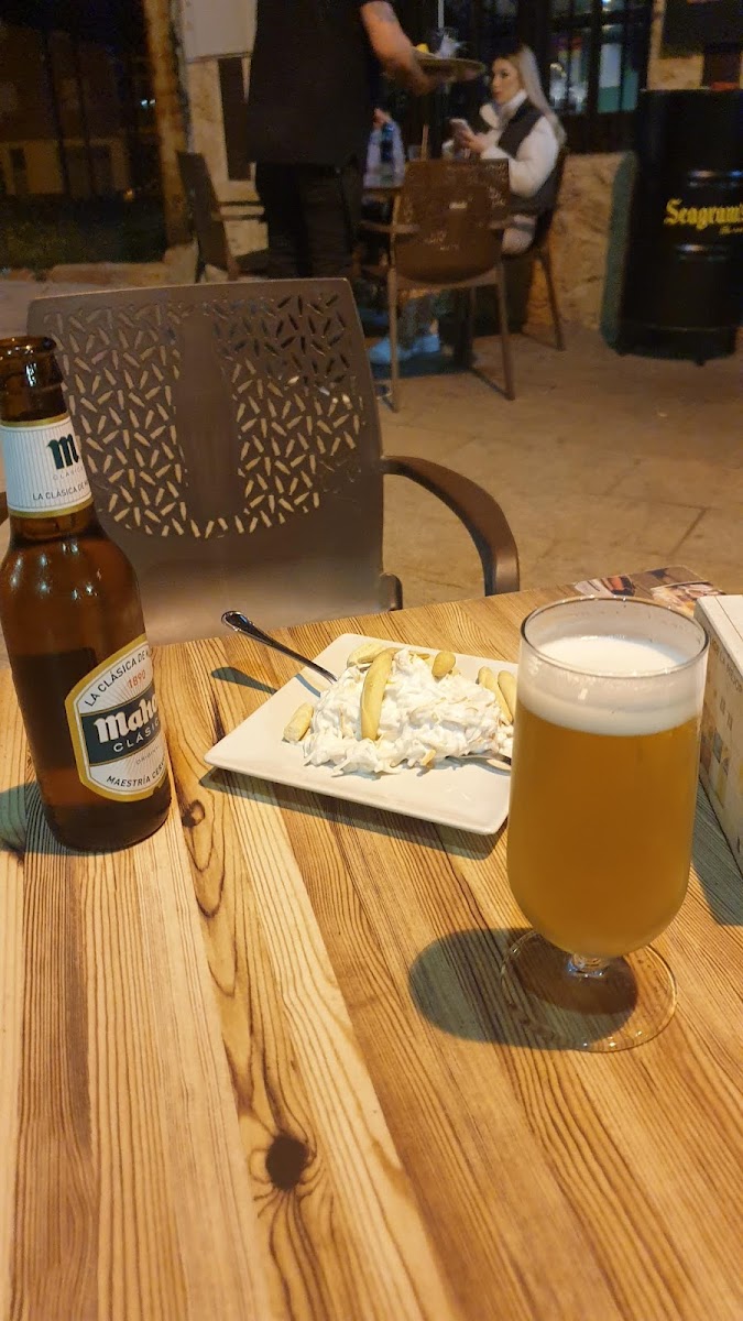 Estuvimos en familia comiendo entre diario. Disponen de menú del día, a 12,50€, con varios primeros y otros tantos segundos. La comida está muy buena, aunque daba la sensación de que no todo era casero, pero podría valer. La cantidad va acorde del precio. La atención sigue siendo buena, aunque la vez que estuve en su día me dio la sensación de ser más cercana de lo que es hoy día. ----------------------- Encontré este sitio por Google Maps para cenar un día entre semana. Por si acaso, llamé para reservar, pero al no ser fin de semana no había problema, pero aún así lo aconsejo. Un lugar con muy buen ambiente. Disponen de terraza y de mesas dentro. Ambiente joven, buen lugar también para ver fútbol con televisor y proyector. El servicio es bueno, simpático, agradable y profesional. Un buen lugar para tener en cuenta para picar algo, de tapas o para cenar, como fue nuestro caso. Pedimos alitas, gambas al ajillo y probamos unas croquetas caseras muy ricas. Todo estaba muy bueno. Quizá, por sugerencia, añadiría un pelín de picante a las gambas, o preguntar por ello antes. Lo eché en falta. También pedimos unos postres caseros muy deliciosos. Se aparca bien por la zona si se va en coche. También dispone de cambiador para bebés en el baño femenino, todo un detallazo.