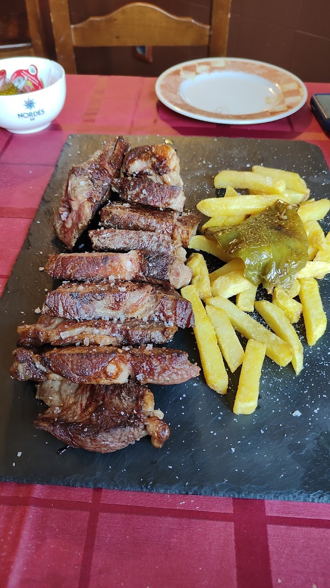 Servicio impecable al cliente, relación calidad precio muy buena y el chuletón con un sabor muy muy rico, además de que se deshacía en la boca. La pechuga de pollo empanada del crío muy jugosa.El único pero la ración de orejas,que estaba salada. Cervezas de importación y artesanales. Pedimos de postre un flan casero y la tarta de queso,estaban tremendos.